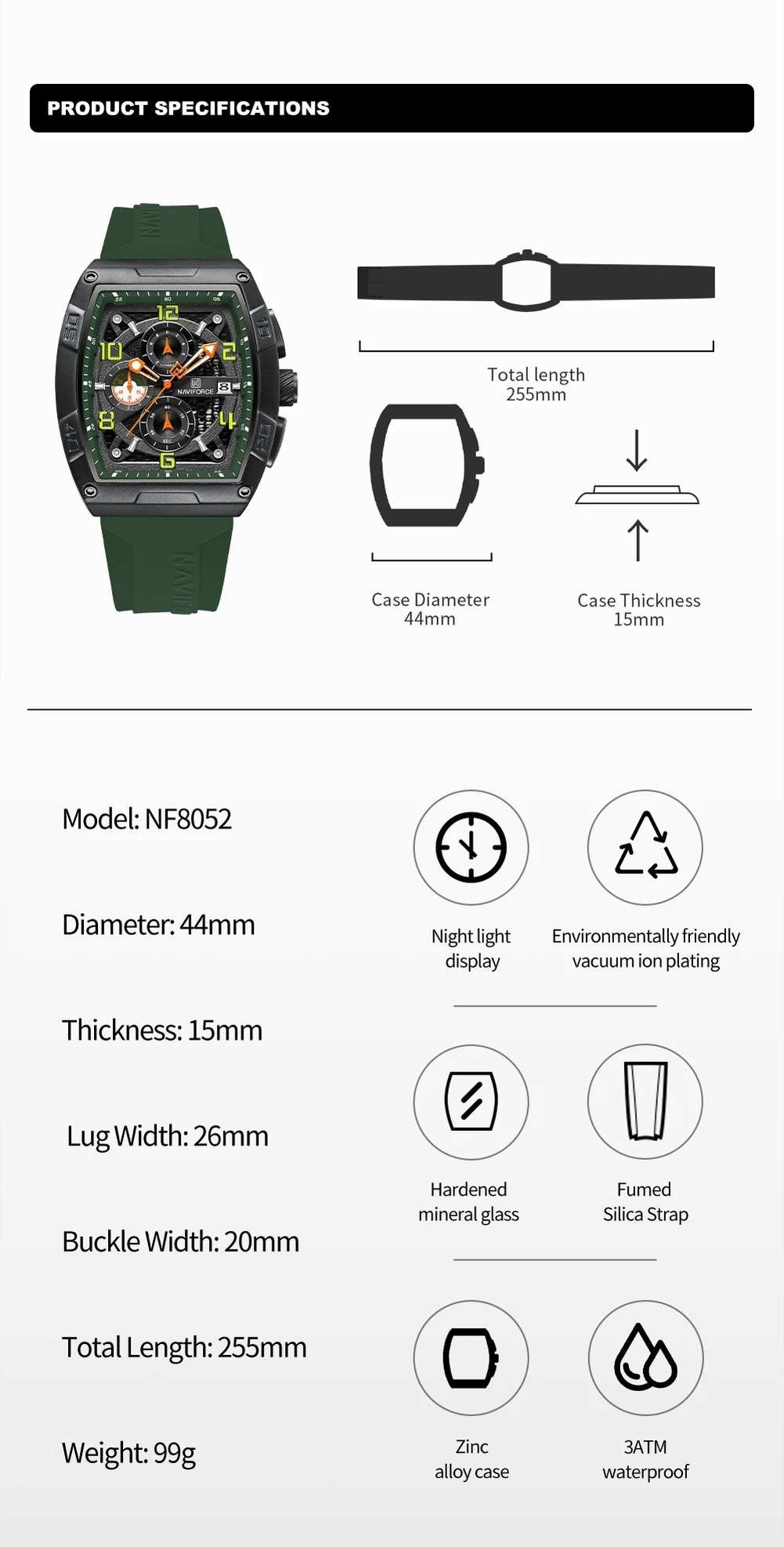 naviforce new fashion stylish green color watch for men – nf8052-c